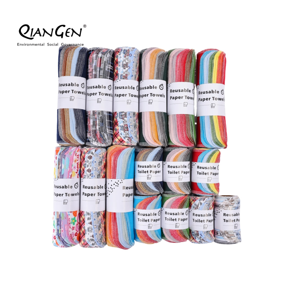 QianGen Eco-Washable Cloth Paper Towels 10 x 12" | Reusable Paper Towels, Absorbent & Soft Unpaper Towels | Zero Waste Paperless Napkins Rolls - 24 count roll